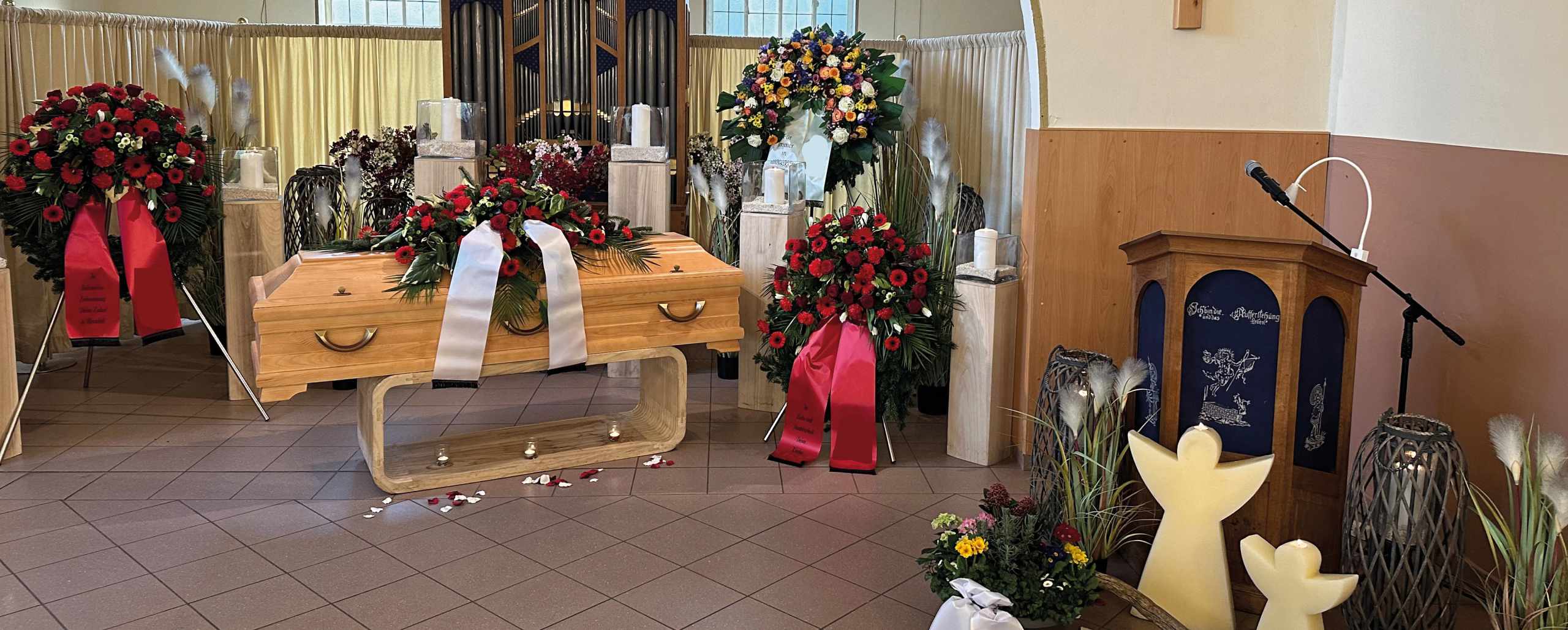 Eine christliche Bestattung beginnt in der Regel mit einem Trauergottesdienst in der Kirche oder Kapelle, gefolgt von der Beisetzung auf dem Friedhof oder an einer anderen Begräbnisstätte. Dabei unterscheiden sich die Abläufe und Schwerpunkte je nach Konfession. Unabhängig von der Konfession stehen im Mittelpunkt jeder christlichen Bestattung der respektvolle Abschied und die Hoffnung auf ein Leben nach dem Tod.